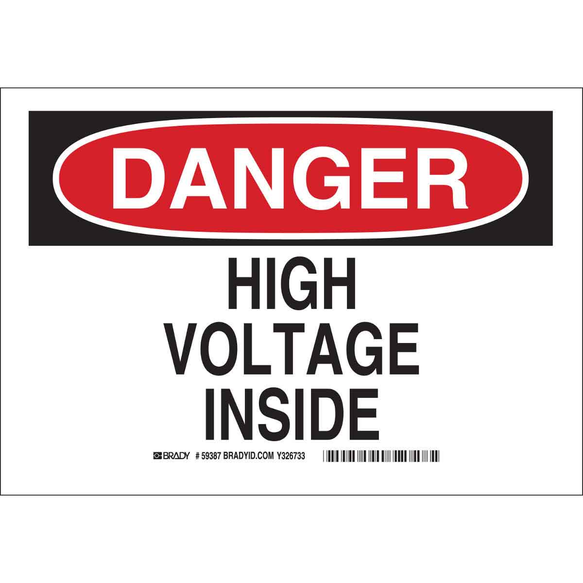 Brady® 19839 Electrical Hazard Sign, 10 in H x 14 in W, DANGER HIGH VOLTAGE INSIDE, Black/Red on White, B-401 Plastic
