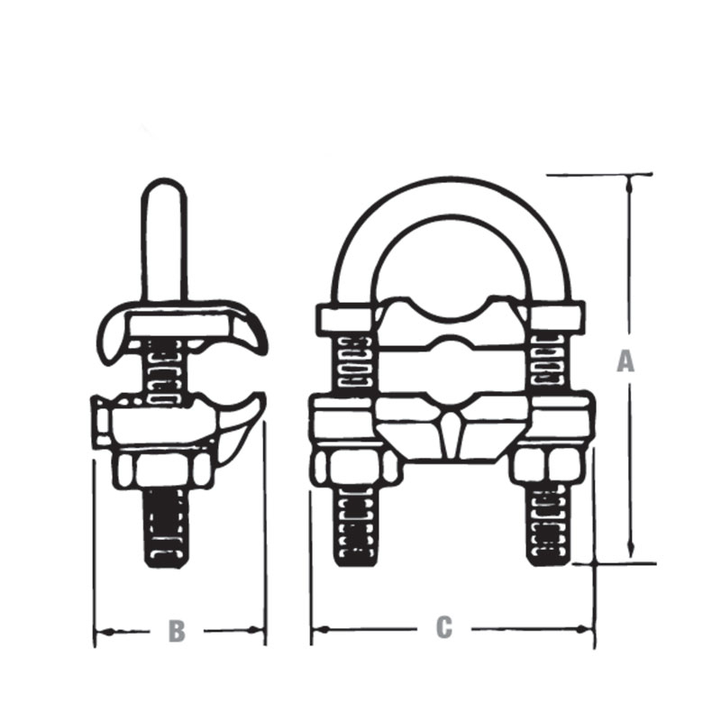 | Excellent for connecting copper or copper-clad steel grounding conductor to ground rod or pipe. Specially designed spacer provides proper alignment between cable and elctrode and affords more positive contact area. |