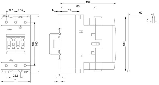 ARRA Compliant C Brand SIRIUS (Siemens) Buy American Compliant C Catalog Number 3RT1046-1AK60 Coil Power Rating 21/300 VA Coil Voltage 110/120 VAC Country of Origin DE Currency USD Dimensions 146 mm H x 70 mm W x 139 mm D Enclosure Type IP00/IP20 EU RoHS Indicator C Frequency Rating 50/60 Hz Gross Weight Per Pack 3.8000 lb Gross Weight per Pack Metric 1.72 Gross Weight UOM Metric kg Harmonization Tariff Schedule Code 8536490065 Height 6.58 in Height [Metric] 16.7132 cm Length 6.34 in Length [Metric] 16.1036 cm Manufacturer Siemens Maximum Load Current 95 A Mounting Type Rail/Snap-On/Threaded Number Of Poles 3 Operating Cycles 10000000 Operating Temperature -25 to 60 Replacement Catalog Number 3RT20461AK60 Returnable N Size S3 Standards RoHS CompliantCCC CertifiedCSA CertifiedUL ListedEAC ApprovedCE CertifiedABS ApprovedLRS ListedRINA CertifiedRMRS Approved Stock Status NONSTOCK Terminal Type Screw Type Standard UNSPSC 39121529 UPC 11 75455441132 UPC 12 754554411323 Wattage 45 kW Width 3.15 in Width [Metric] 8.0010 cm Number Of Poles: 3; Enclosure: S3; Design of the fuse link: Fuse gL/gG: 10 AMP Auxiliary, Fuse gL/gG: 250 AMP Main 300 VA (pick-up), 21 VA (holding) magnet coil at AC 0.52 (closing), 0.29 (holding) power factor