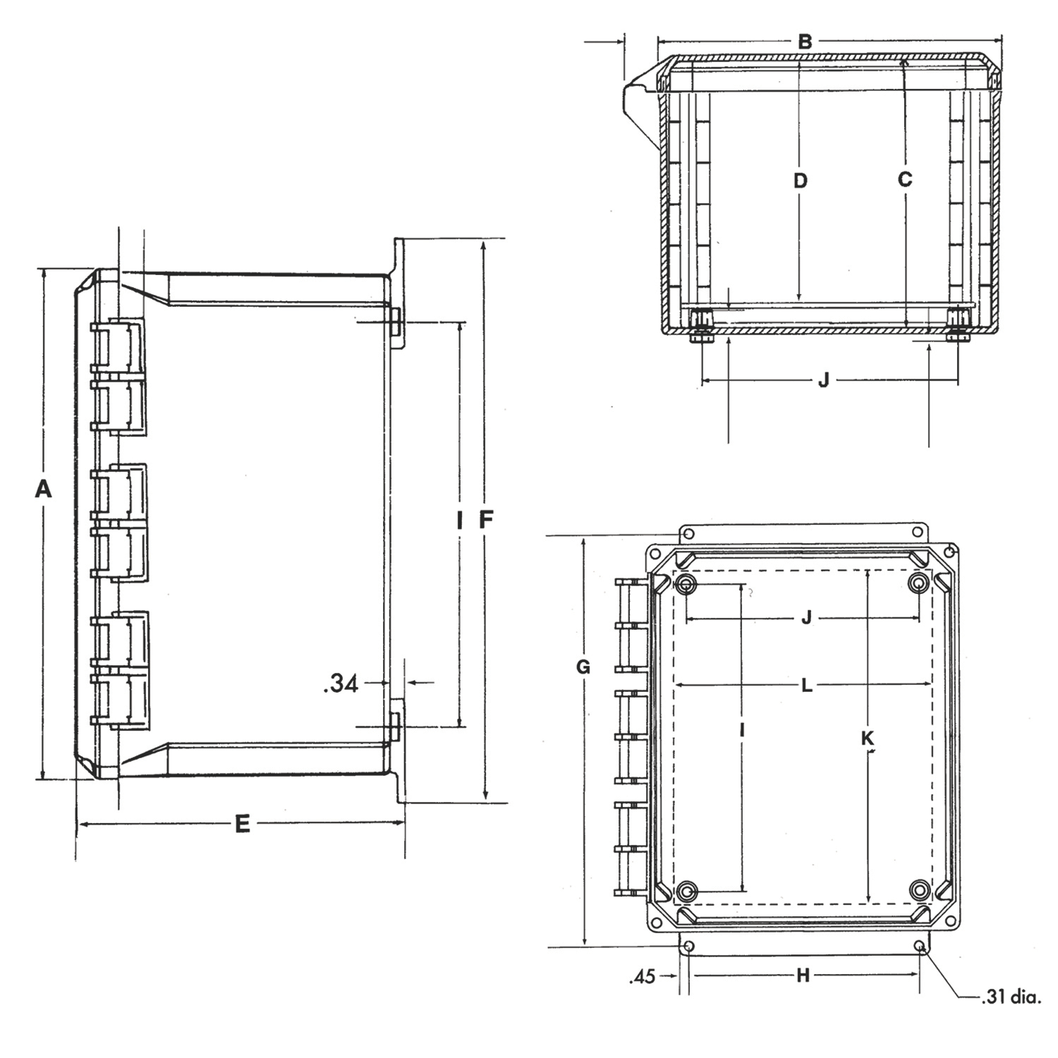 | Sturdy SS latches install without penetration of the enclosure base |